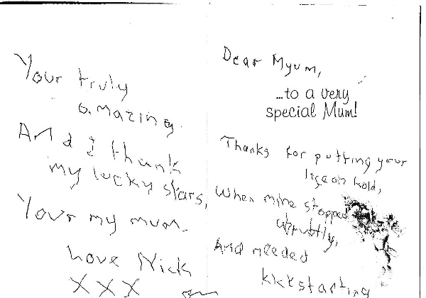 But, perhaps for me the crowning glory of all his efforts came when, after months of practise, he gave me this on Mother’s Day and reduced me to tears.