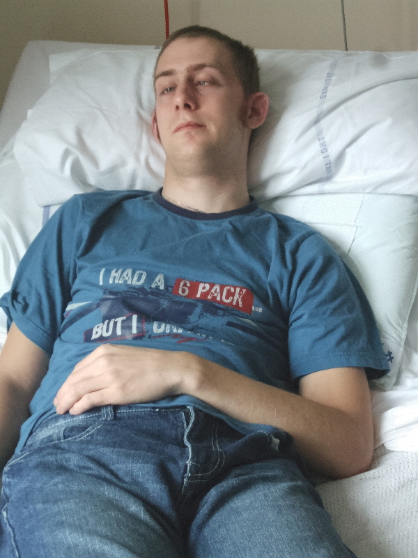 Physically, Nick still has a mountain to climb. He is still cross-eyed much of the time and has severe double vision, though both eyes have a good range of movement now. This in turn hampers his hand/eye co-ordination.. as well, of course, as forcing him to see two of me every day… His left ear bothers him as he has tinnitus. His beloved hair still has a way to go before he can style it properly!