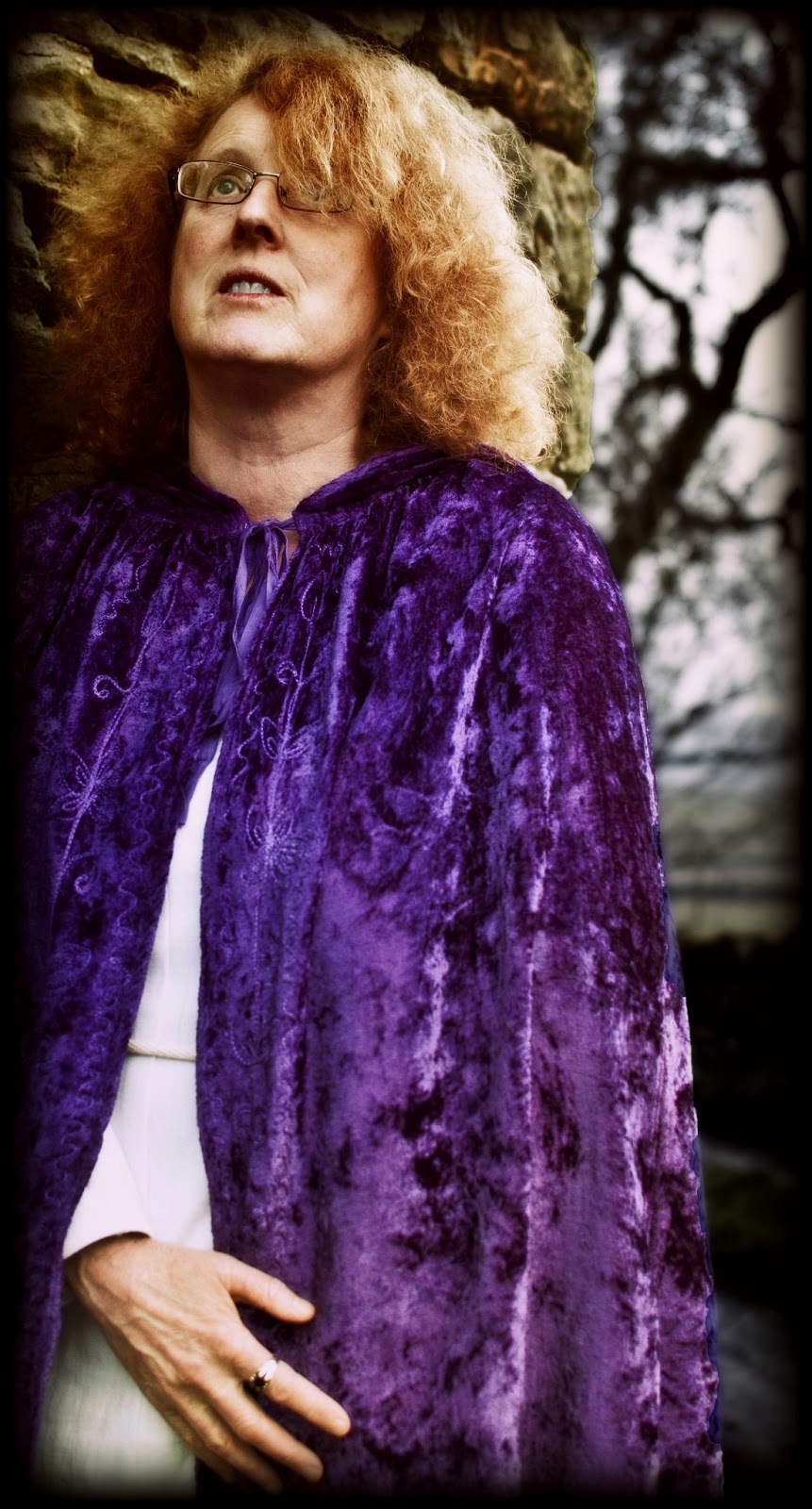 My inner eye now moves to Saturday, early evening – and me, still dressed in robe and purple cloak, posing by stone shed whilst Matt took photos – and then seeing, afterwards, his astonishing image of us all. The nature of it I shall not reveal because it will be shown soon, and I don’t want to spoil the surprise. Suffice it to say that, to me, it sums up the weekend better than any words could.