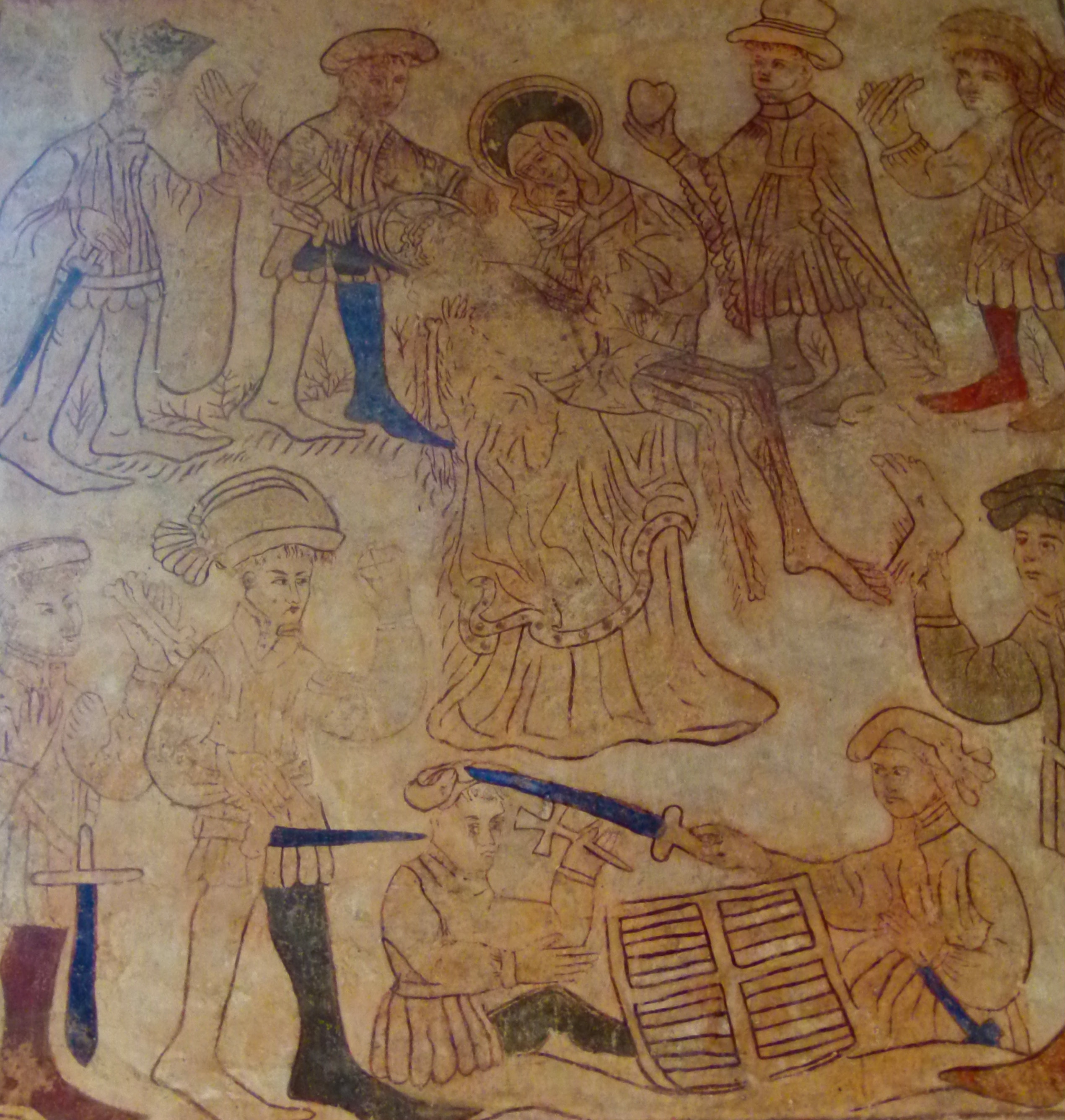 There was also an intriguing Pietà, depicting the effect of blasphemy upon the ‘body’ of Christ. The various blasphemers are shown coveting the parts of the Christ’s body which their calumnies have torn asunder… Needless to say there are fourteen such miscreants and if the Doom in some respects reminds us of the Egyptian ‘weighing of the heart’, then this scene cannot but remind us of the dismembered Osiris…