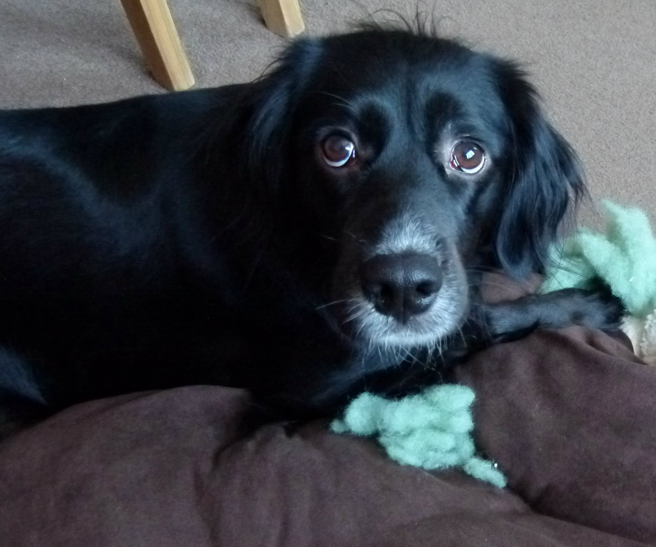 An Ani appears on the sofa-back beside me, her head on my shoulder, looking up. She leans in for cuddles. A soft, hairy muzzle sneaks into my hand, gazing up soulfully. Then the head is on my shoulder. This from a dog who only cuddles if you lie down with her on the sofa.