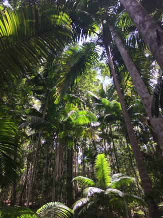 We thought we had misheard; sitting on the back row of the four-wheel drive bus – yes, I did write 4×4 bus! There’s a picture below, just to prove it. There are four of them on Fraser Island, which is just as well because the only ‘highway’ on this 125-kilometre strip of sand is a perfectly straight eighty-kilometre beach facing the Pacific ocean.