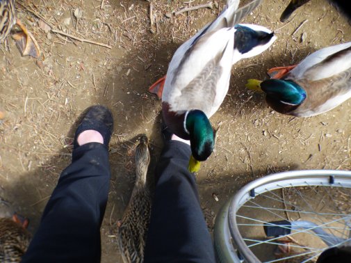 The mallards were the worst offenders… no shame at all. Sitting or standing, we were stood upon. Nibbled.