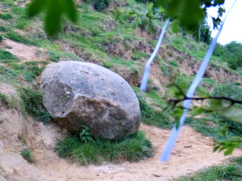 By this time, I was coughing and spluttering in good earnest; the cold seemed to be offended that I was ignoring it and decided it would try being bronchitis instead in order to gain attention. The rain that had been at least reasonably cooperative during the day was also threatening to make its presence known. Morgana suggested the party should walk up to the Eggstone on the Tor in the fading light. Common sense should probably have prevailed, but the combination of visiting the stone with friends, inadequate sandals and wet grass proved irresistible.