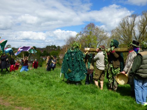 Hundreds of people held hands to create the circle in which a symbolic shelter of withies was constructed for the May King and his Queen. When they arrived at the head of the procession, the festivities began in earnest.