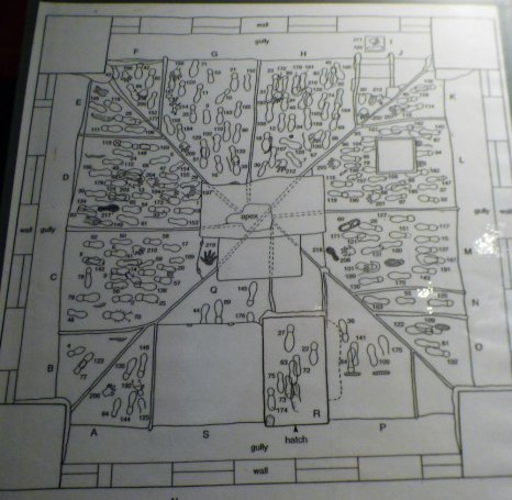 There is a plan of where the prints were found and many photographs showing the changing shape of footwear over the years. They also show a range in ages and perhaps even sexes… they are referred to as either ‘plumbers’ or ‘lovers’ marks. One mark, though, is neither hand nor foot, but a figure with what looks like horns and tail…