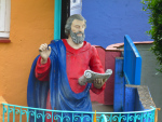 Run down another and one is accosted by a plaster-cast-christ declaiming on a balcony from which depends a black sheep.