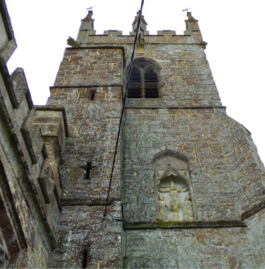 Outside the doorway and dominating the churchyard is a medieval preaching cross set on five steps. The carvings are much weathered and it is now impossible to make out what was originally carved on the finial. More curious though are the carvings on the corners of the steps. They too are eroded and easy to miss. Worn faces stare out over the green, surrounded by an odd circular feature. At first we thought they were perhaps symbolic depictions of the four directions, or something solar. The Four Holy Creatures would have been more appropriate, but they didn’t look anything like the lion, the ox or the eagle…only the man. Or perhaps woman… maybe the carvings show nothing more than local dignitaries wearing Elizabethan ruffs or elaborate headdresses. It certainly looks that way from the photographs, but it was impossible to see in the dull light of day.