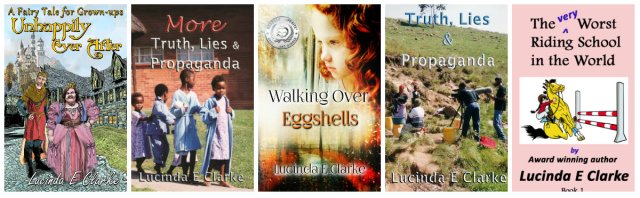 Abandoned in the African bush with a 9 week old baby and no resources Lucinda could look back on a childhood of mental abuse, without knowing that before her lay an even more bizarre future. She would run the worst riding school in the world, broadcast live with a bayonet at her throat, be fired from her teaching position and thrown into the media world. She would learn how to lie in the name of propaganda, write about dozens of topics for a variety of clients and have her own newspaper column. She would meet kings and statesmen, international artists and rural Africans. She would win several awards along the way for her scripting and films. Eventually she would reluctantly leave Africa to retire in Spain. A few months later she would begin writing books – eight to date in a variety of genres – and start a whole new career, collecting more awards.
