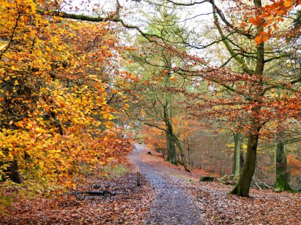 We followed a golden path through a wood steeped in history and mystery. Mesolithic folk once walked here, whose flints are found eroding from the soft earth. Mines have been dug to gather minerals from deep below a surface where bars of gold have been found with no known origin to explain their presence. The shadows of legends seem to flit across peripheral vision and even on a golden autumn day, there is a feeling of being watched by something older than Man.