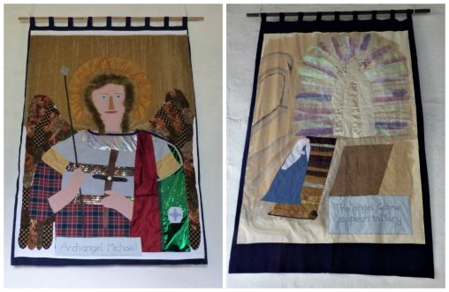 There was evidence of much love in the windows, but I still couldn’t see any reason why the place should feel so happy. There were embroideries and hanging made by the local children, so it was evidently a church still very much at the heart of its community.