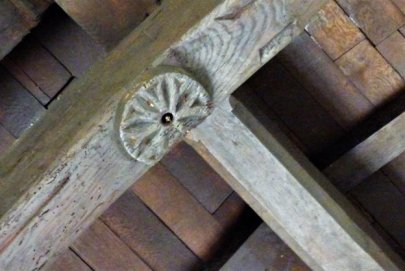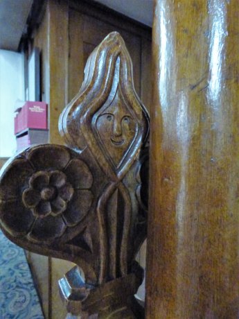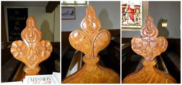 There were flowers everywhere, and that always helps. There were fresh bouquets behind the altar, ancient floral geometries carved as ceiling bosses, and painted, arts and crafts style, on the pulpit.  There were also flowers carved into the bench-ends of the ‘new’ pews, installed in 1842.
