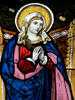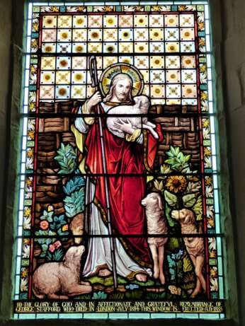 They are mostly commemorative pieces, as are so many stained glass windows, in memory of parishioners and clergy alike, including the east window, a tribute to a mother from her children, which shows Jesus between the Virgin Mary and Joseph carrying a cage of doves.