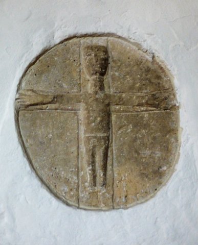 There was another smile too. When the new pews were being installed, a carved stone was found. No record exists of where in the church it was originally placed, and there is no mention of its age. They set the roundel into the south wall of the nave for safekeeping where it could easily be overlooked, and that would be a shame. It is old, seems, at first glance to be crudely carved and ‘primitive’ in style. It is possibly as old as the church itself… and it is possibly the most beautiful crucifix I have seen.