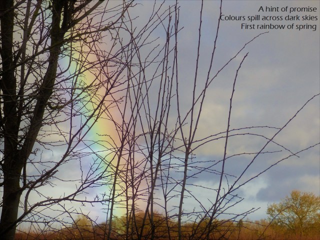 Such a wonderful sight when was it taken . We got caught in hail Sunday afternoon, walking Ruby. The sky was black. Five minutes later the sun was out. I looked for a rainbow, to no avail 💜