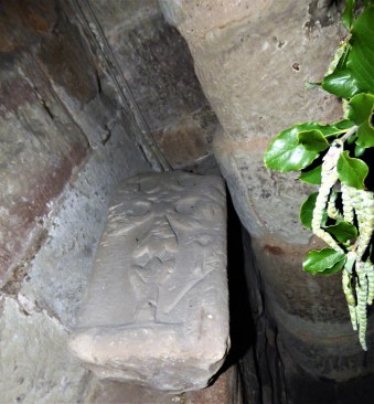 We finally made it through the outer door of St Wystan’s church in Repton…and stopped. Two huge columns flank the inner door and, scattered around the porch are fragments of ancient masonry. carved medieval grave slabs and Saxon crosses. It was a good start.