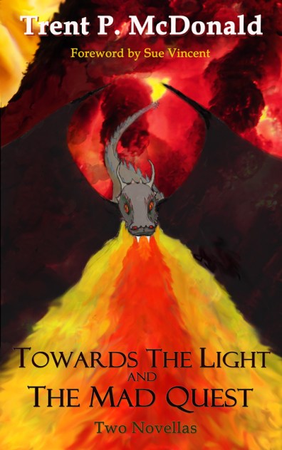 “Towards the Light” and “The Mad Quest” are two fast paced, farcical Fantasy novellas. With visible winks and nods to the great Fantasy works that came before, but with a few unexpected twists, these two stories are light-hearted valentines to those classic works of the past; love notes but with pokes in the ribs and “bunny-ears” behind the head fun.