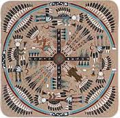 “They are used in our curing ceremonies to attract The Holy Ones. They are made with crushed stone, ground minerals, and pollen. And sometimes, flowers. Oh yeah, and, of course, sand. The ground is prepared first, and then the medicine man sets about building his painting. Once it is complete, he will chant to sanctify it. Then the sick person sits on it, and the medicine man does a ritual chant to bring forth the healing powers of The Holy Ones. That’s all there is to it.”