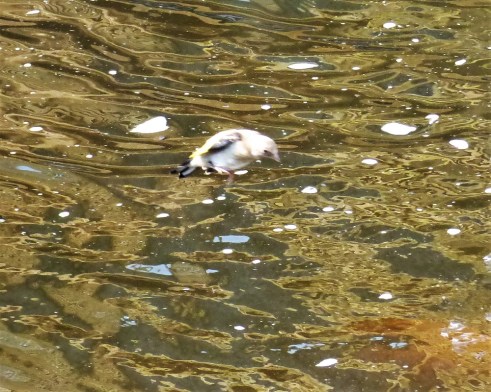 I have no idea what he is, but he seems to have found a safe haven to bathe. 🙂