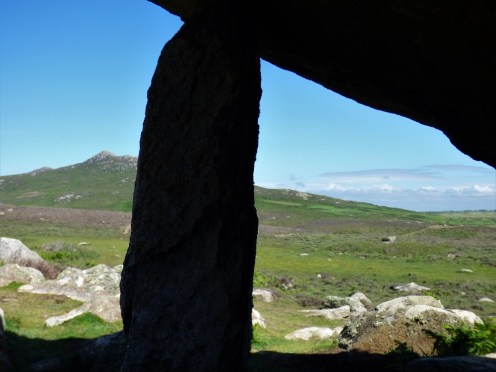 For visually challenged writers, the image shows a summer landscape of rocky hills, seen from within a stone chamber.
