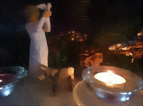 For visually challenged writers, theimage shows a small figure of an angel, releasing a dove of peace. Around the angel are lighted candles, pine cones, and a small wooden donkey.