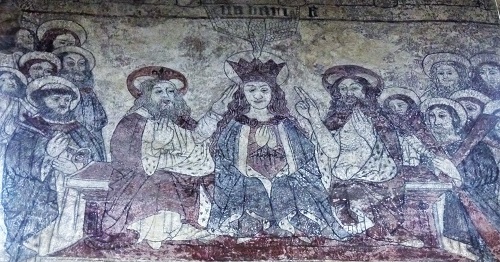 The walls of the nave are almost completely covered with mediaeval wall paintings. It is one of just a handful of churches in the country where almost the full sequence of such paintings can still be seen.