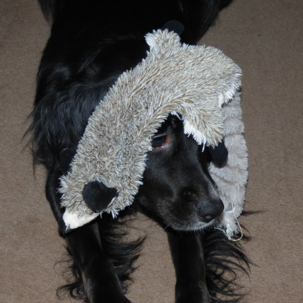 Mine is currently on the arm of the sofa, six inches away, and brandishing a ball 😉