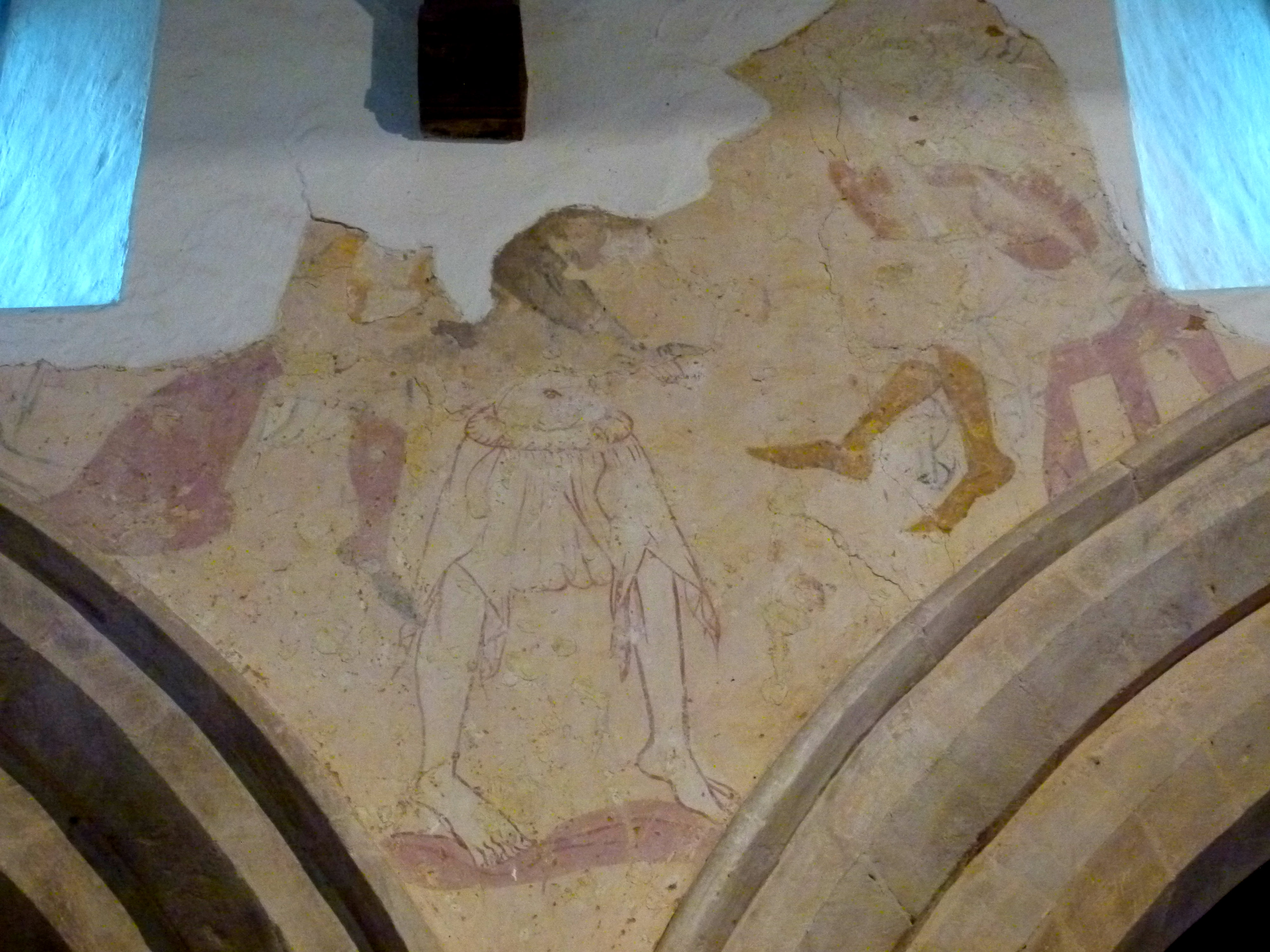 It astonishes us how many fragments of medieval wall paintings remain in these old places that never get a mention in the scholarly books on the subject. Possibly because what remains is fragmentary, not easy to understand or put in context. There may be a foot, a creature, a face… and the rest has gone, wiped away by time, damp and whitewash. Because they are incomplete and perhaps unrecognisable they are overlooked, as if beauty has to be a complete story that reveals itself all at once.
