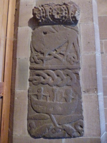 Don wandered off down the north aisle while I was still taking photographs of the hogbacks in a vain attempt to give some sense of the sheer scale and detail. Looking up I saw that look on his face. He’d found something and was waiting… and something pretty spectacular to judge by the expression. Had I seen the Fishing Stone yet? His tone was far too innocent to be anything other than suspicious. I followed his gesture and stood amazed.