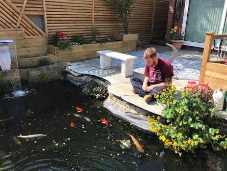 The fish in the pond all have names and quite distinctive characters. Fred, a lovely bright orange butterfly koi, is one of the babies. The markings on his back look like someone has loosely painted him in watercolours. Of the babies, he is one of the bravest. Willow, on the other hand, another of the butterfly koi babies, is still quite shy. She is an elegant fish, a pearlescent white with just a touch of orange.