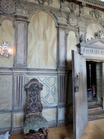 A little further and we reached the Long Gallery, with one wall full of windows and the other carved and panelled. This too was built in the sixteenth century. The long, bright room would have been perfect for social gatherings, but would undoubtedly have been put to good use by the members of the household. You can imagine children racing up and down the empty space, ladies, kept indoors by inclement weather taking their exercise there or using the sunlit space to read or sew.