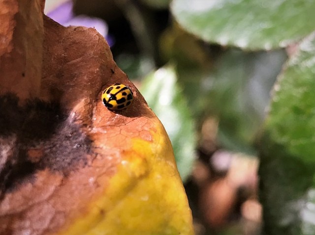 Most of our ‘Lady Beetles’ or Ladybugs are red with black spots. Some have only a few while others have many spots. I think it was an old wives tale that said the number of spots told how old she was 😉 I would imagine that in different climates all things adapt.