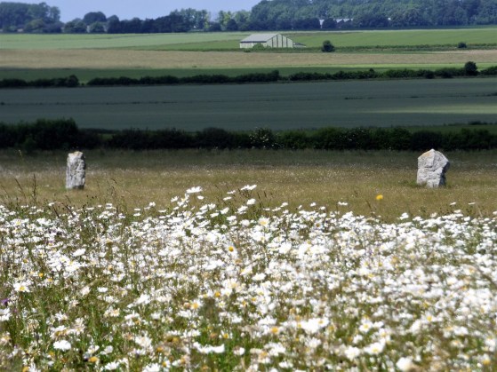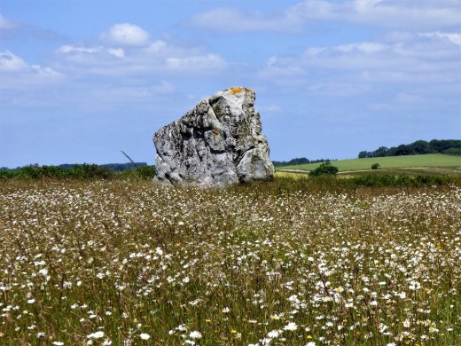 The stones are known as the Longstones and individually as Adam and Eve. Adam, the larger of the two, once formed part of a Cove…a five stone enclosure, while Eve was part of the Beckhampton Avenue… an avenue of twinned stones that formed a processional way between the cove and the main circle. At the far end stands the Sanctuary, with West Kennet Long Barrow close by, at this end, there was a cove and another long barrow.