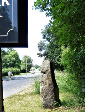 Instead of driving to the Red Lion as is our ‘tradition’ when coming back from these research trips via Avebury, we decided, for a change, to stop at the pub on the outskirts of the great monument. There was no reason for this particularly, we just thought that we should. And anyway, there is a rather cheerful stone outside the pub that welcomes you and invites you in. It may or may not be ‘original’, but it is not out of place in this landscape. As it was a hot and sunny day, we took our drinks out into the garden of this thatched, seventeenth century inn.