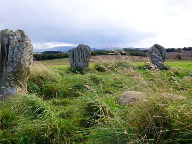 The hill upon which the stones stand rises alone, like an island in a ploughed sea, in the centre of a wide basin. You could imagine it appearing to float above the morning mists. In the distance are the hills of Scotland and the view from within the circle is wide.