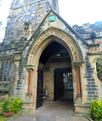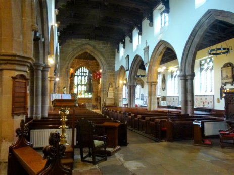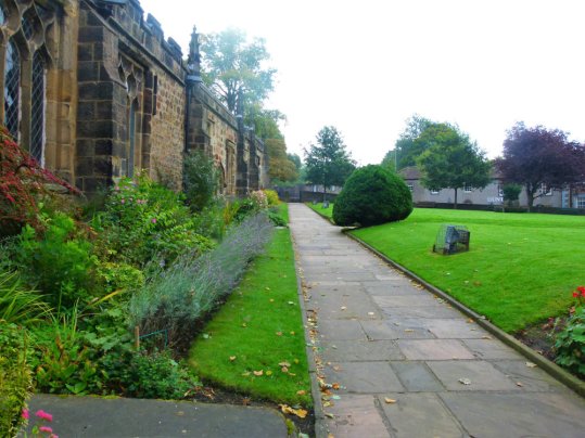 We were up early next morning and were cheerful about an email we’d had, telling us that the friends we had found over breakfast on our first morning in Scotland would be joining us for the December workshop in Derbyshire. We had talked about leys, geometry and dragons and left wishing we had more time to talk. And now, once again, we were ready to leave straight after breakfast… which just about left us time to wander up the through the marketplace to Holy Trinity church. It stands just outside the gates of Skipton Castle, looking down the length of the main street. We would have nowhere near long enough… as had been the case everywhere on this trip… but it would be enough to see what was hidden within the golden stone, still wearing the dark traces of Victorian industry.