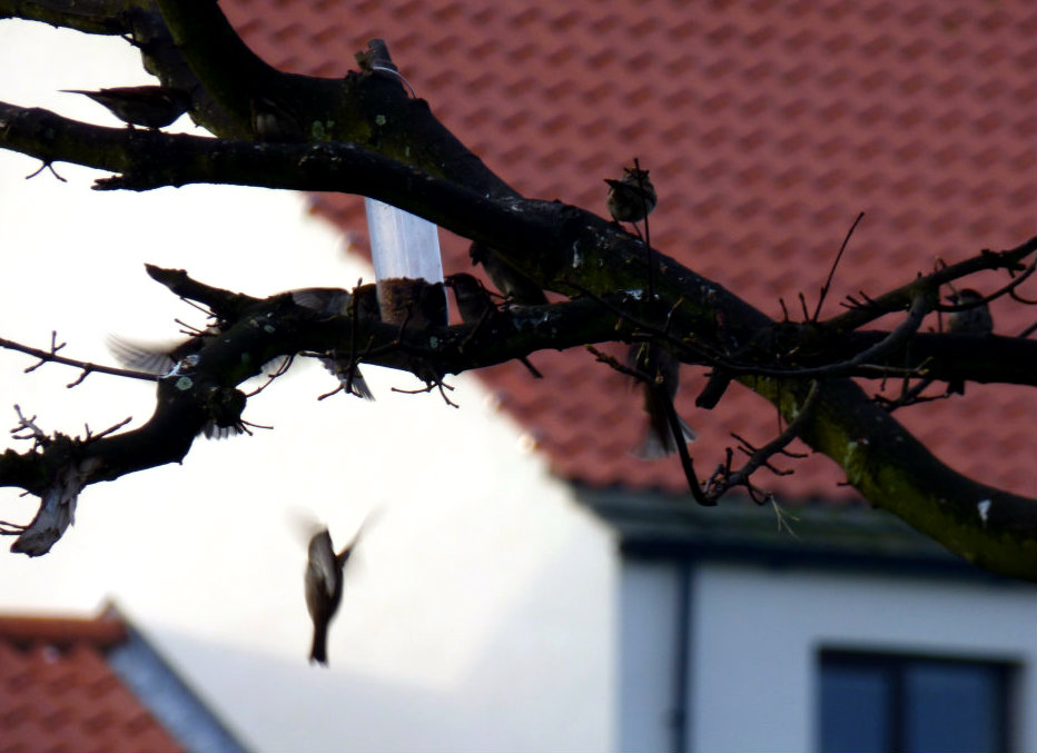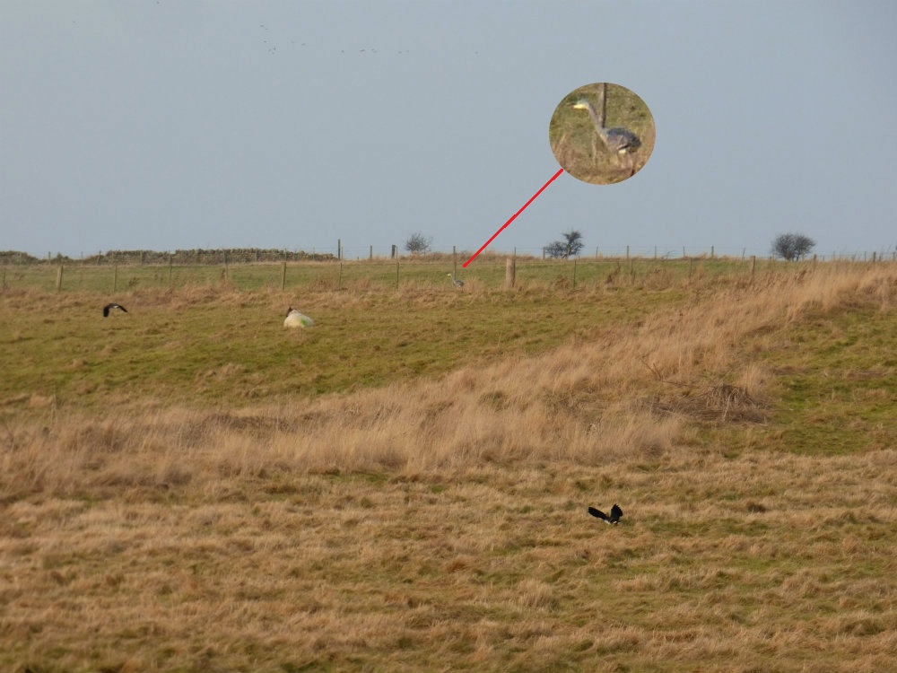 They were everywhere. Another robin, blackbirds and gulls… doves and sparrows. A posse of chickens ahead of us on the path… and we had the kestrels. And that was without the mallards, the lapwings and the heron caught on camera sneaking along the line of a fence. He obviously thought he was in stealth mode…