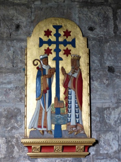 After Oswald’s death in battle at the hands of King Penda, the king was hailed as a saint and many miracles were attributed to his relics and the spot where he died. Bamburgh’s parish church has a chapel dedicated to Oswald as both king and saint, an over its altar is a gilded image of the king with his sister, St Æbbe, whose church we had seen just an hour earlier.