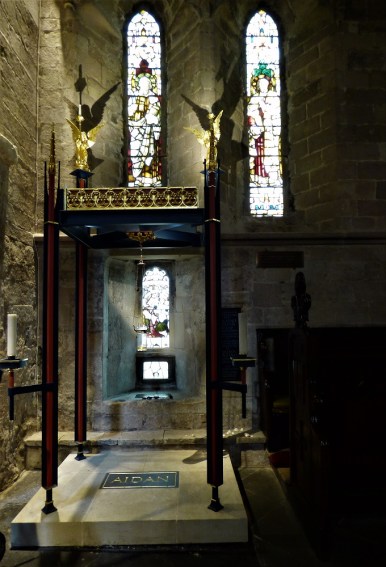 Aidan was a visionary in more ways than one and walked through life in the footsteps of his faith. The Venerable Bede wrote of the saint that he never rode where he could walk, gave only hospitality to the wealthy, and all donations he received were given to the poor, used for housing and educating orphans and for freeing those sold into slavery. Winning the love and respect of all, from the lowliest to the highest, it is little wonder that he is venerated in this area…and especially at the church where he died.