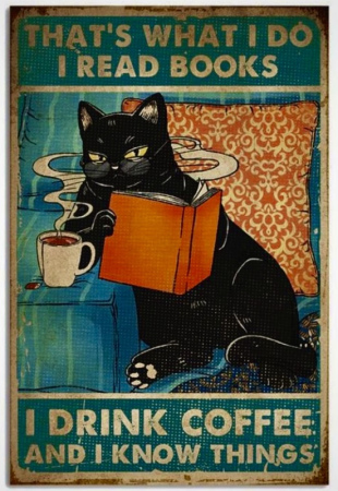 I loved the image… I’d credit its creator if I knew where it came from; but there it was in my in-tray. The cool black cat with the importantly steaming mug of coffee, and an engrossing book with covers in my favourite colour… all of it pushing back the awfulness of an English February.