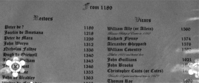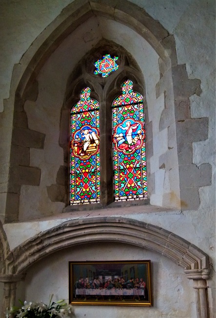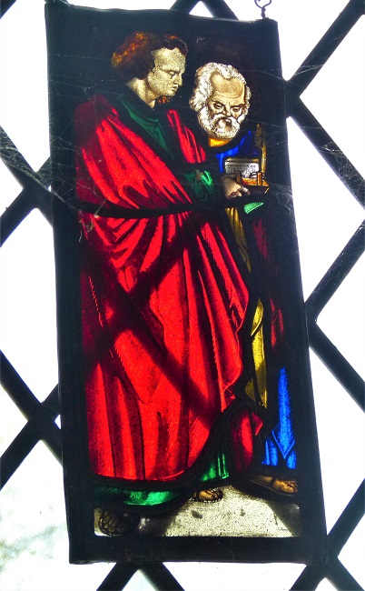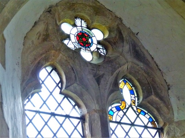 We wandered around, taking in details like the missing memorial brasses in the flagstones of the aisle, the traces of mediaeval wall paint and fragments of older glass lodged within the tracery of the windows. You have to wonder if Cromwell’s lot were responsible for smashing the glass here as they did at so many other ‘idolatrous’ churches throughout the land… and realise that yes, they probably were.